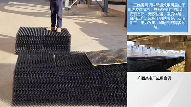 PP三維菱網(wǎng)填料降溫效果明顯由于傳統波紋填料,具有很高的性?xún)r(jià)比,安裝方便,無(wú)膠粘連,強度優(yōu)越目前正廣泛應用于鋼鐵治金、石油化工、電力發(fā)電,印刷制藥等多領(lǐng)域。